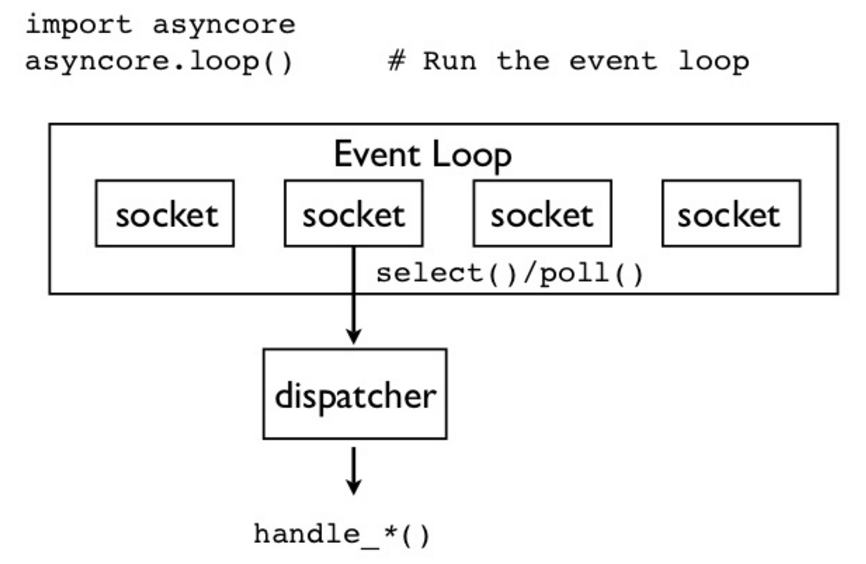 Tornado的ioloop也是类似的,记录了一个个文件描述符和handler的pair,每当有io事件发生,就会调用该文件描述符对应的handler。